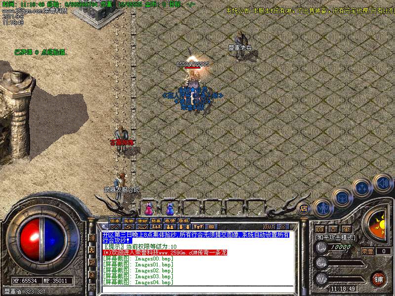 玩家1分钟可升级到35级。玩家升级到35级系统将送您祖玛套装一套,道士47级可招老虎.54召双虎
