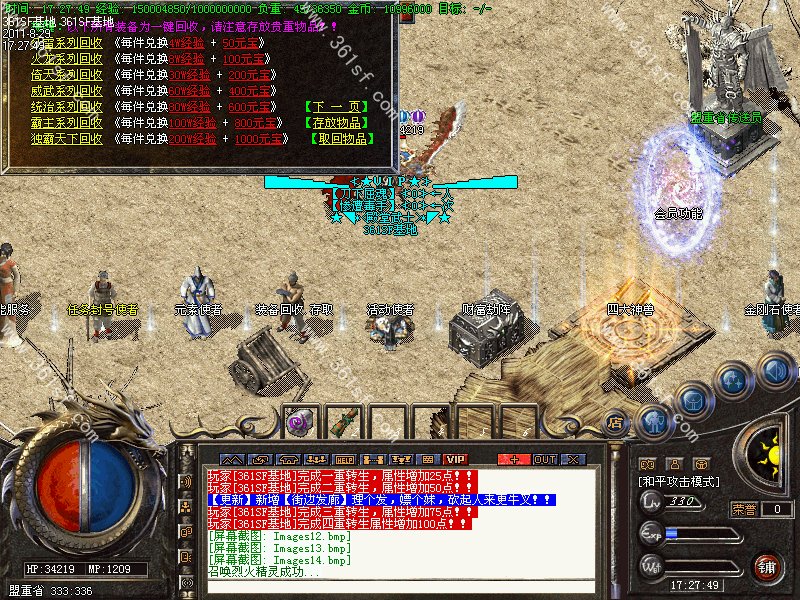 【更新】更新转生系统,1-15转,转生后每转都可以获得相应属性点,每转可获得强悍技能.详情请看转生皇帝!