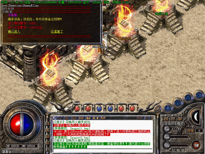 土城药店旁每10种刷出人形怪物每砍一下获取1.5W经验,更有元宝相送!