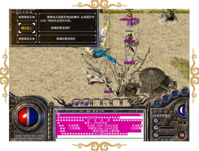 元宝比例:短信1:1000亿元宝★点卡送100%=2000亿元宝★网银送100%=2000元宝 请自行到网站上面充值。无任何待遇,非诚勿扰!!!