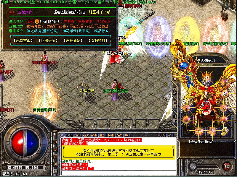 玉兔贺岁[冰封雪,山暗黑长廊,血色瑶池,女娲神殿]:神之纵横[暴率超高]、神马浮云[暴率高]