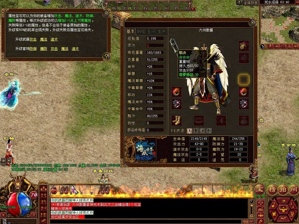 高级装备,兑换元宝和经验。