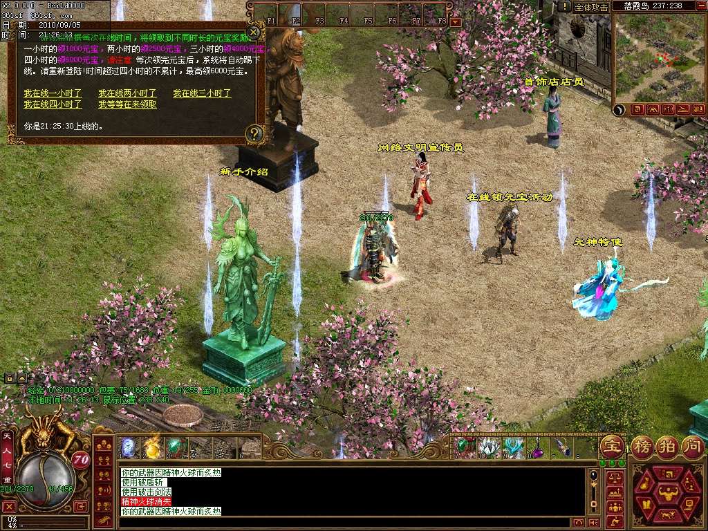 黄金寻宝:活动开始进入黄金城地图,杀死携带字体的老虎收集字体,即可兑换圣天装备