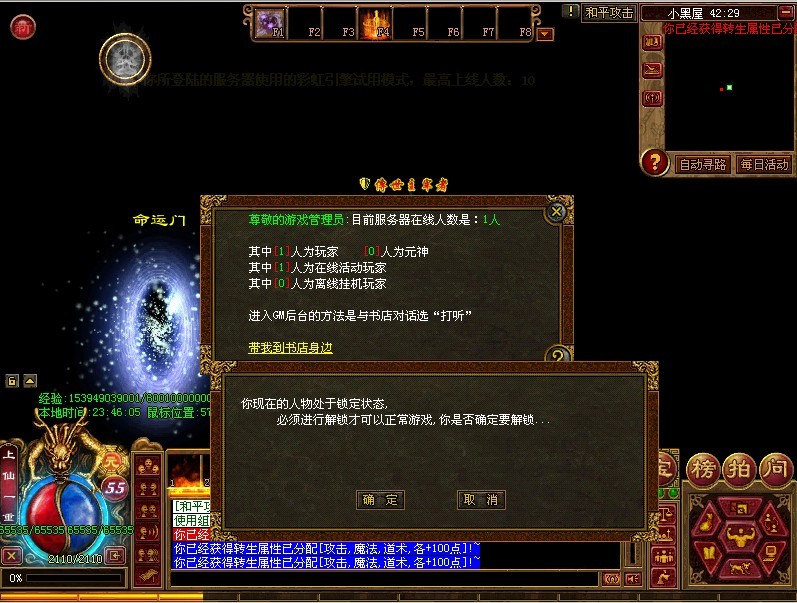 游戏助手:本F72级飞升,升一级加一重并加一点属性点在功能NPC分配