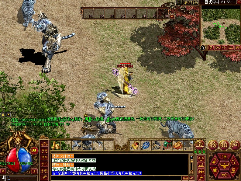 完美实现官方虎王系统,喂食虎王可获得五行攻击、五行防御,不同的职业获得不同的虎王技能