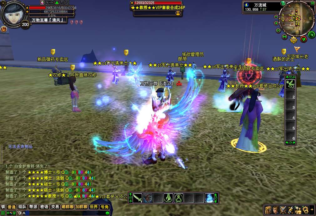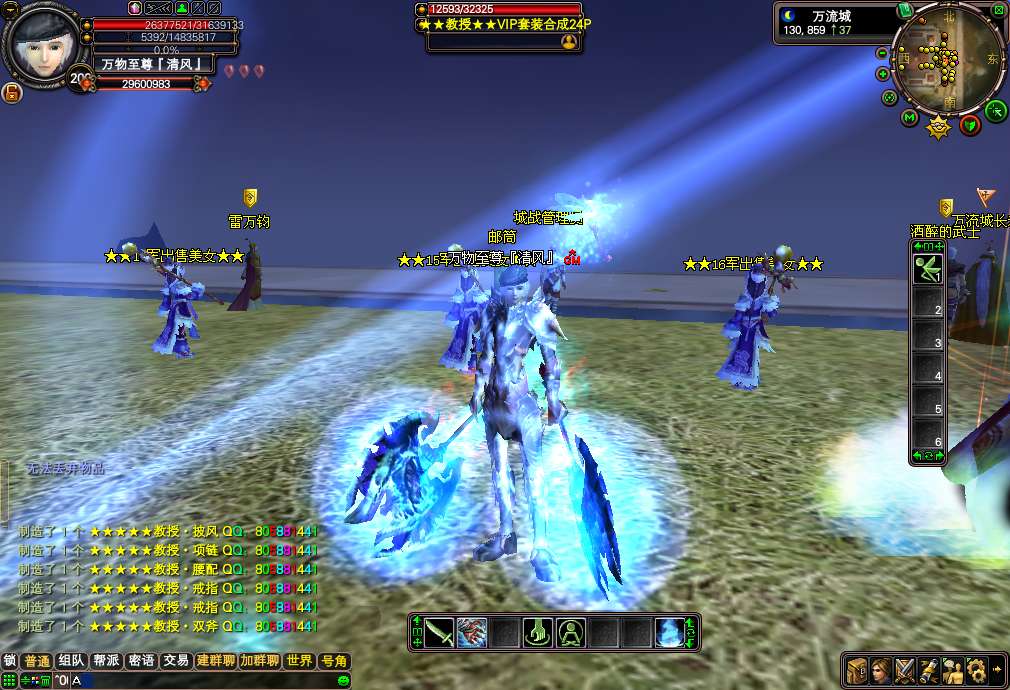 更新说明:1.更新军衔系统13级军衔 450W声望!「14级军衔」500W声望.「15级军衔」 600W声望.「16级军衔」 700W声望.「17级军衔」 900W声望.「18级军衔」 1200w声望2.更新限量版书页合成<让所有玩家都可以拿上限量版的武器,不需要再和会员挣抢野外BOSS了>:请到24品合成那合成:具体材料请大家进游戏查询!!3.修复通用战宠合成的BUG,改成材料合成,请到特殊道具合成那合成:具体材料请大家进游戏查询!!8月10日上午10点已更新:24品武器打孔功能,您不会再嫌弃自己的武器攻击低了,如果是一洞,那您还等什么呢,赶紧去司令合成那打洞吧,几率为50% <人品+运气=孔的数量> 最高2孔~~更新后24品武器均不可以交易,装备首饰可以交易~~友情提示:游戏中的终极法魂石和会员的终极法魂石的属性是一样的,游戏中显示不正确!请大家互相转告~【版本介绍】: 请大家爱护游戏环境,大家公平竞争,拒绝秒挂.点击查看秒挂标准※双倍爆率地图,300级玩家可以进入或者每天晚上8-9点可以进入。※新手每天报到奖励,只要您每天上线了就可以领取奖励.只要连续上线八天,将可以合成全服最好属性的披风:「限量珍藏版」披风。※添加限量版披风,武器,戒指,攻击和属性都是最上乘的。【武器有攻击等级属性】※在线泡点功能,2小时奖励5个幸运金蛋<可以开出所有材料+会员装备>※挖宝活动,飞来镇每30分钟刷新一次,每次4个宝箱,【能挖出会员装备哦】※本服22-24品可以机枪枪。22-24品可以大瞬<22品以下均不可以瞬发> 【注意:法师必须是套装】※八折VIP卡,持有此卡购买会员8折优惠。各大BOSS都有几率爆出!!※新增「变种」大力神 和 「变种」飞天猪 所有玩家出门必带宠物哦!※超炫武器外观,全新多种玩法,多样武器外观变化,集美观新颖,交友温馨,打架激情于一体。※所有装备精练后都会大大增加属性基本在2-3倍左右哦!!※添加官方最新时装,飞机,坐骑。让您眼花缭乱!!※所有特色稀有观宠/飞宠/坐骑/时装商店低价购买,包裹跟宠物笼全部扩充好,地图全开!※本服取消乾坤袋,购买物品请到万流 商人NPC购买※结婚系统保存几率为50% 请玩家结婚后尽量半小时内不要下线※本服承诺,绝对公平稳定长久,家族进服一律不给任何待遇,所有物品在游戏中均可获得,普通玩家只要多花点时间与耐心,与会员一样厉害。【上线设置】:本服上线万流安全区 上线150级, 修真大乘【双修一秒】 17品套装一套 仙魔技能书各一套<仙技能书在仓库>。声望450W→【可以去军衔领取使者那领取13军任务 然后去远征营地杀掉5个美人鱼最后获得13军套】. 注意:上线赠送的4个二级攻击石头,是给您准备打在19品武器上面的,切记请别卖到商店了,不然后面说打着BOSS累,请别怪客服!!希望大家相互转告!! 包袱赠送一个新手指导,如果您不知道材料的出处和BOSS的坐标,您可以一览新手指导,方便所有玩家不用看网站就知道在哪刷材料了。【装备顺序】:装备依次顺序为:新手送的【班长】——19品【排长】 —20品【连长】— 加强20品【营长.团长】 — 21品【旅长】 —22品【师长】 — 23品【军长】 — 24品【司令】。军衔依次顺序为:新手送的【13军★40W声望】——20品【14军★500W】 —21品【15军★600W】— 22品【16军★700W】 — 23品【17军★1000W】 —24品【18军★1400w】以上的装备请所有玩家游戏体验。注意:【装备品数相等的装备属性也相等】【副本介绍和材料出处】:材料图片教您该去哪49副本爆出: 爆出: 【排长】成品套装59副本或渔村 爆出 【★军人之魂★】 【★军人之魄★】 【★军人之灵★】 合成:20品【连长】59副本和飞来镇 爆出 【★★军官证★★★】 此材料为通用材料.可以合成任意材料 合成 :【营长.团长】89魔副本 爆出 〓完〓 〓美〓 〓世〓 〓界〓 合成:21品【旅长】89魔副本 爆出 〓完〓 〓美〓 〓世〓 〓界〓 合成 :22品【师长】89仙副本 爆出 〓金〓星珠 〓木〓星珠 〓水〓星珠 〓火〓星珠 〓土〓星珠 合成:23品【军长】89仙副本 爆出 〓金〓星珠 〓木〓星珠 〓水〓星珠 〓火〓星珠 〓土〓星珠 合成:24品【司令】神月副本和飞来 爆出 〓等级卡〓夜郎和夜哭小怪 爆出 〓声望牌〓 分为:200-10000不等的声望牌 【为了玩家考虑声望牌多了点的累,积累100个声望牌可以去WL声望牌换取员直接换取声望】【野外BOSS介绍】:〓凤姐〓会员武器 坐标 夜郎 123.319 103.321 【每3小时刷新一次 每次2个 每个必爆一样】〓凤姐〓会员首饰 坐标:通天糊 414.588 431.588 【每3小时刷新一次 每次2个 每个必爆一样】〓凤姐〓会员披风头盔 坐标:太极滩 583.984 575.993 【每3小时刷新一次 每次2个 每个必爆一样】「轮回·天尊」神器 坐标:万流城北郊 101.865 99.875 【每4小时刷新一次 每次2个 每个必爆一样】「轮回·魔尊」限量 坐标:夜郎 116.324 【每2小时刷新一次 每次1个 每个必爆2样.注意此BOSS爆的是材料.合成终极武器和戒指的必备材料】 友情提示:游戏中除了军衔装备24品武器和限量武器外其它套装均可交易!【任务系统】:每天报到奖励:只要每天上线报到后系统就会赠送您:二张无敌符和 俦具:「限量披风」加强版 两个 【集齐15个将可以合成限量版披风,全服属性最好的】金蛋声望任务:完成任务后系统会赠送您2000声望和幸运金蛋一个【幸运金蛋能开出所有材料和会员装备】在线泡点奖励:每2小时系统会赠送您5个幸运金蛋 【幸运金蛋能开出
