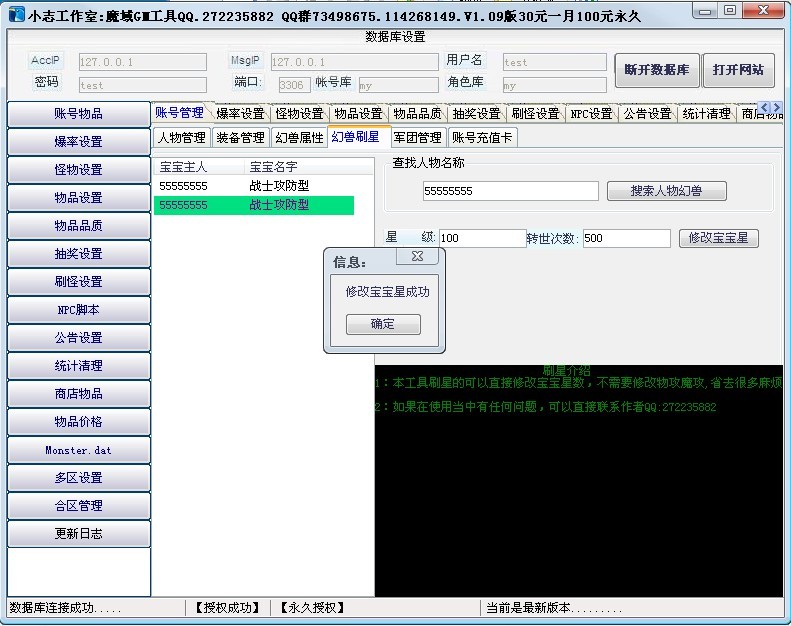 - 小志工作室魔域GM工具2.18添加新宝宝 5565