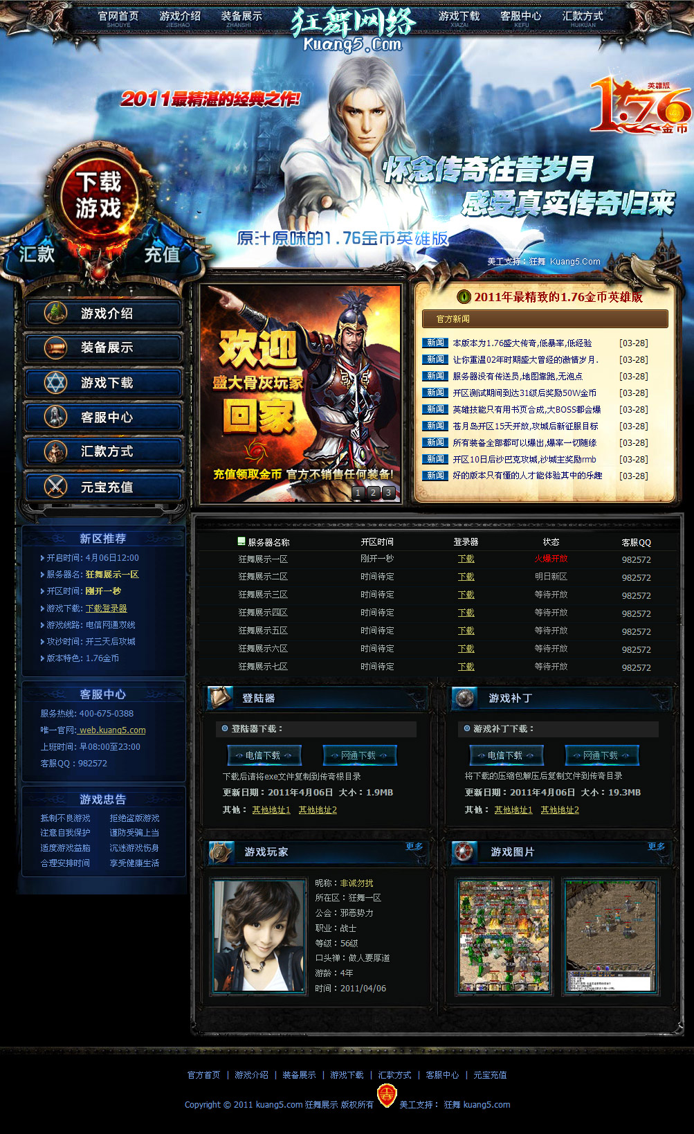 立即下载狂舞网络v1.76英雄游戏网站模板