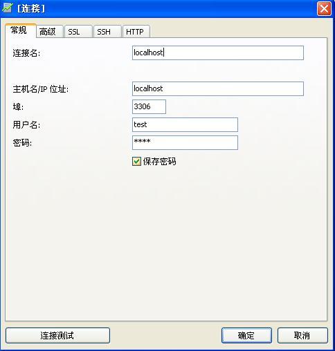 1、解压MYSQL管理工具后,安装Navicat_MySQL_cs和Navicat 8.0.20 破&解补丁。安装好后,打开Navicat for MySQL,在新建连接名为localhost:用户名和密码都是test。