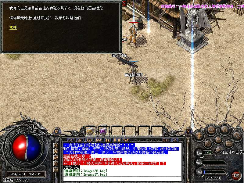 登陆本服务器需要专用登陆器,否则不能登陆,本服务器禁止任何外挂,发现使用脱机等外挂者,不管是否花钱,立即永久封号,按F12呼出自带内挂,封穿人穿怪!