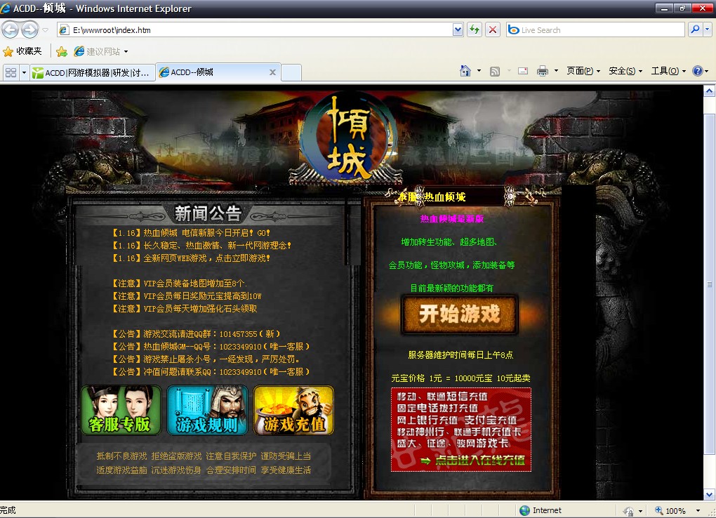 立即下载倾城仿官方服务端带恶人谷-阳光-转生-会员-怪物攻城等
