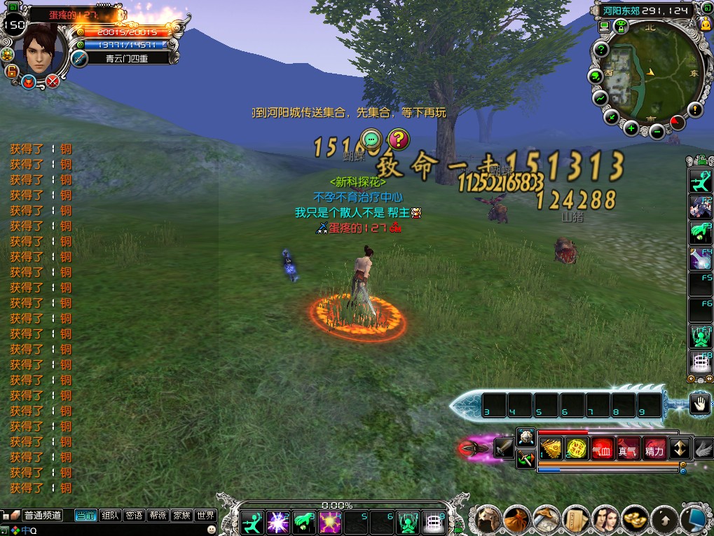 游戏不用升级,上线打坐直接150,飞升后也如此!1-150的经验只有750点。
