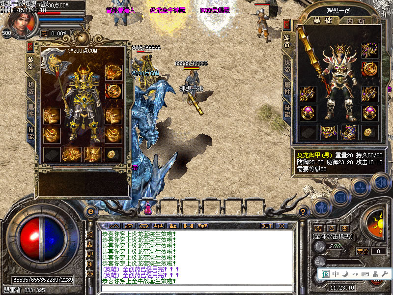 冲级到128级可以奖励炎龙,雷龙,青龙套装