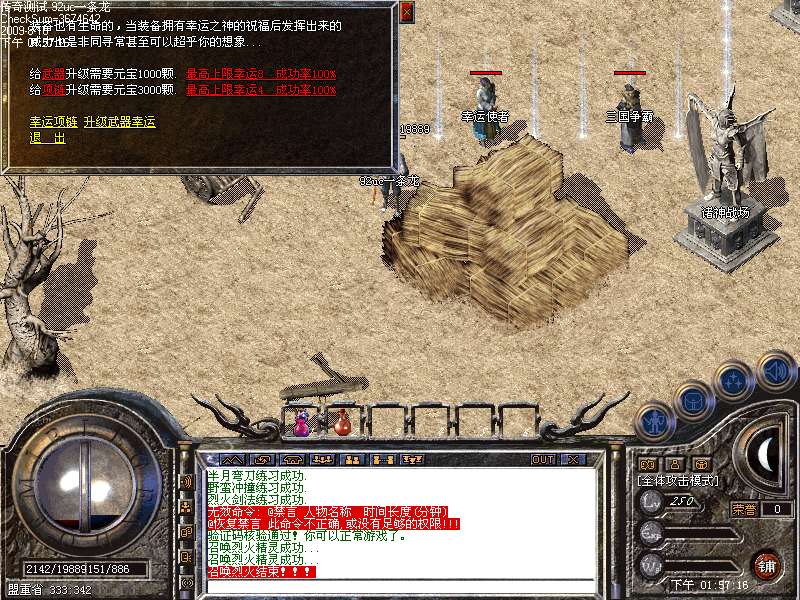 11 【幸运值系统】:盟重土城正下方有幸运使者.给他想要的东西他可以帮你满足幸运9的愿望.让你的武器和项链都能拥有幸运.让你PK时刻释放出最高攻击力!!