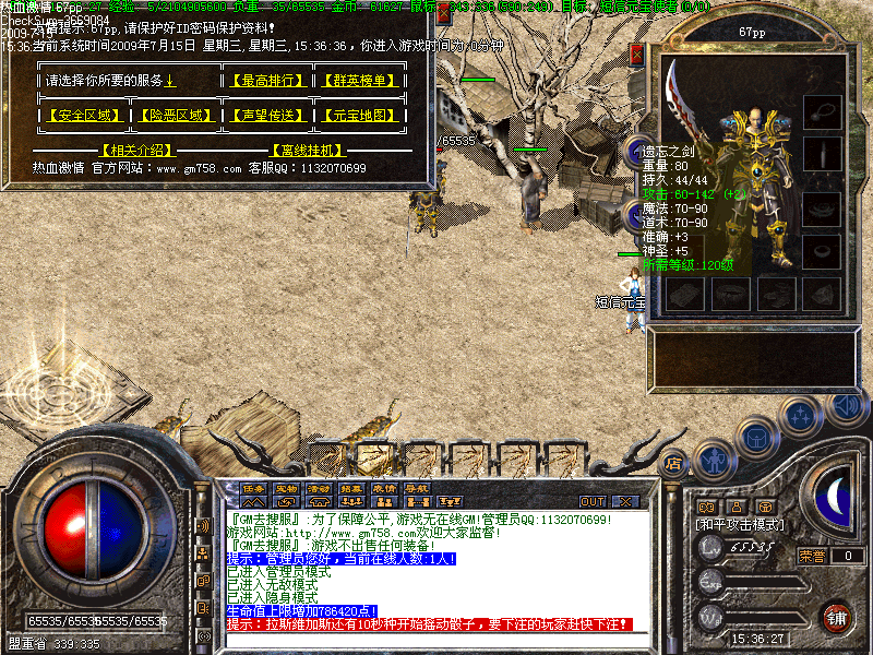 服务器每半个小时执行一次奖励系统: 《所有打怪地图随机一个地图内的人物获得奖励!》 奖励物品为:大量的元宝,经验,金币已经各种宝石奖励!