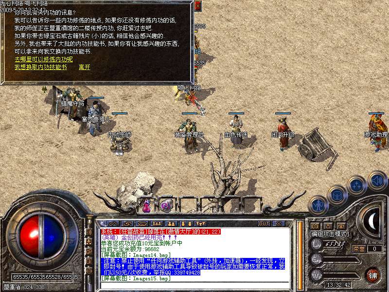 6.注意:本服暴率已经提高,卧龙山庄的人形怪杀死后,免费挖取,近期发现,有部分玩家,把人形怪当成是GM,或者是别的玩家!