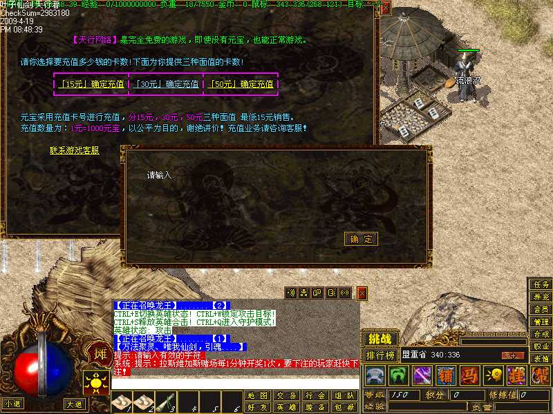 - ☉ V8引擎传奇端游【荒域专属单职业九大陆】Win一键端+配套补丁网站+架设教程