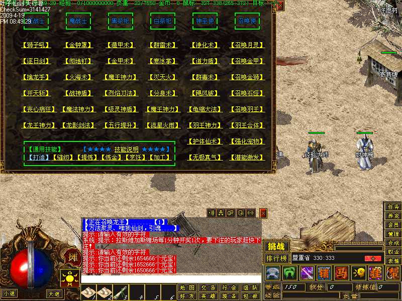 这时候先回城去把杀死火龙的任务交掉,接到30个元素门弟子首级的任务