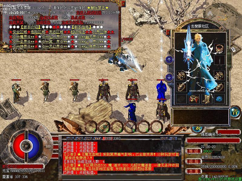 4.人界可转生六次,共得属性点1050点;魔界转生四次,共得属性点2300点,完成10次转生后每天可享受1小时3倍经验包房练级,每天还可领取20元宝。