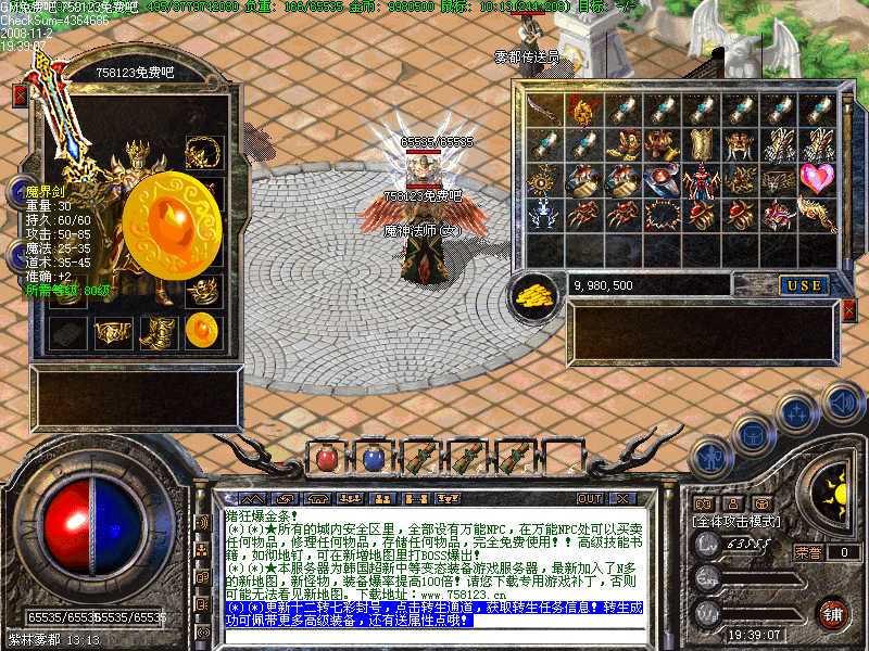 G(*)★所有的城内安全区里,全部设有万能NPC,在万能NPC处可以买卖任何物品,修理任何物品,存储任何物品,完全免费使用!!高级技能书籍,如彻地钉,可在新增地图里打BOSS爆出!