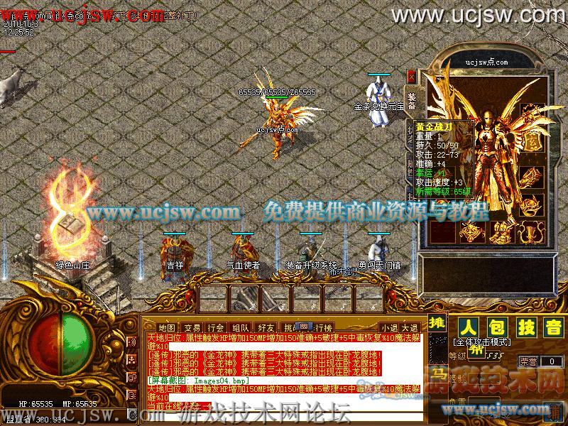 装备套装等级分为幻影-血刹-黄金,天使,宣螟五大系列!强烈建议大家下载本游戏完整补丁体验新装备的美感!新添加装备均可在土城锻造炉处合成!忘新老玩家周知!