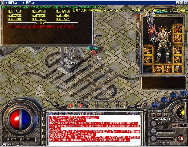 聚宝盆广场:打宝圣地主要怪物——暗之魔龙教主,聚宝使者,所爆物品:战神装备和神武装备