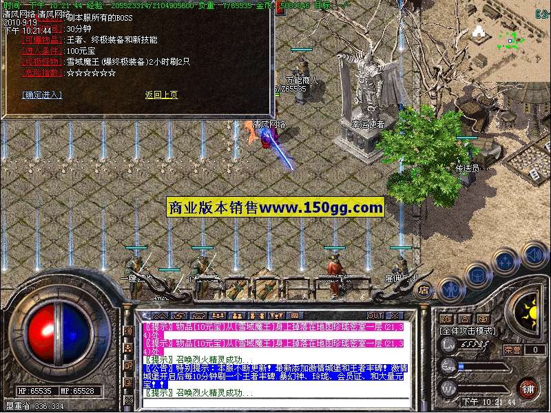 7.新增“元宝神龙”刷新地点:土城药店,聚宝盆(必爆100元宝),“经验使者”刷新地点:土城书店,封魔安全区(必爆500W经验丹),每60分钟刷新一次。!