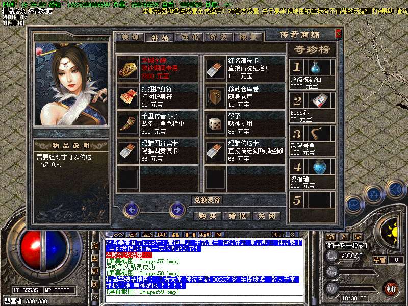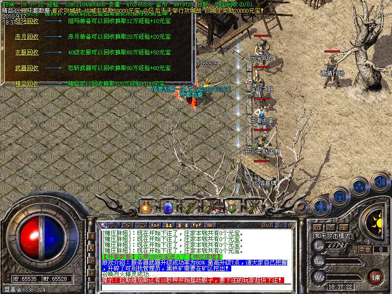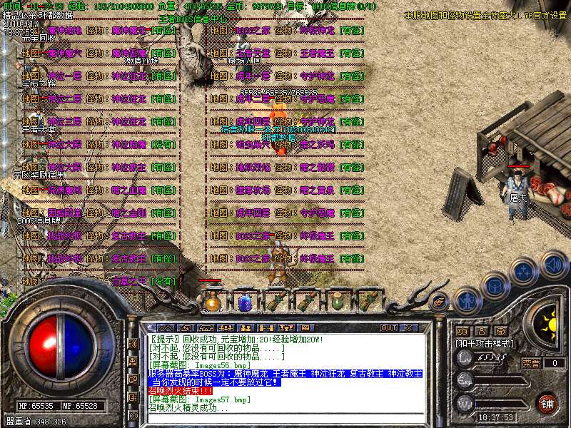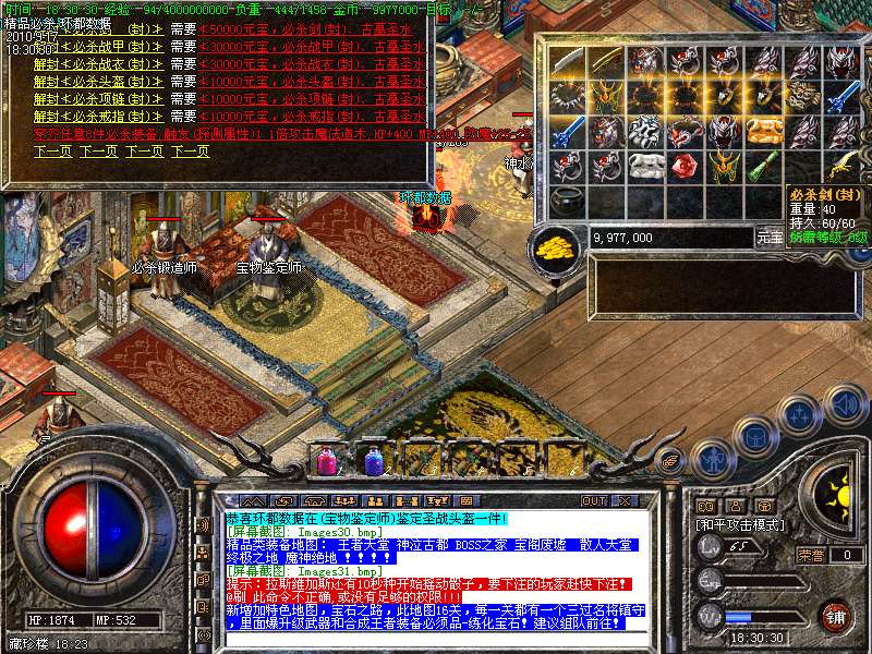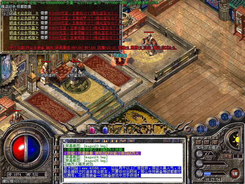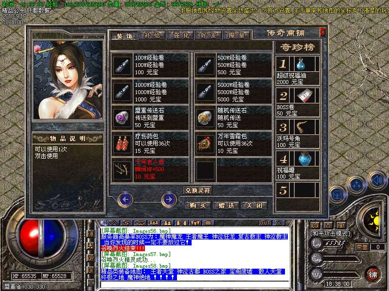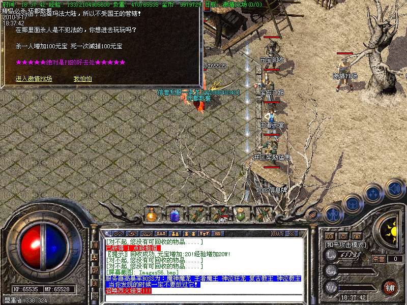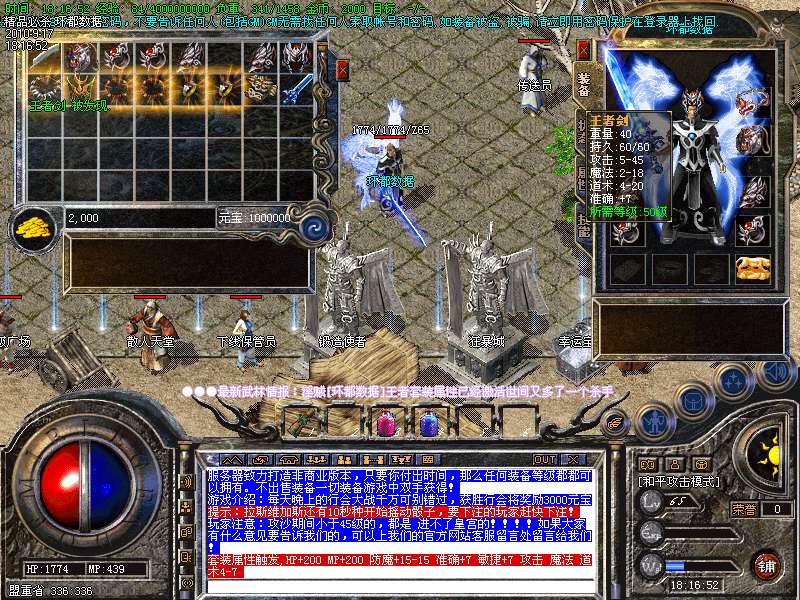 4.特别地图:王者天堂为打宝天堂,每天16点开放.此地图任何大小怪物都可以有机率暴出赤月类装备和精品首饰、终极武器!