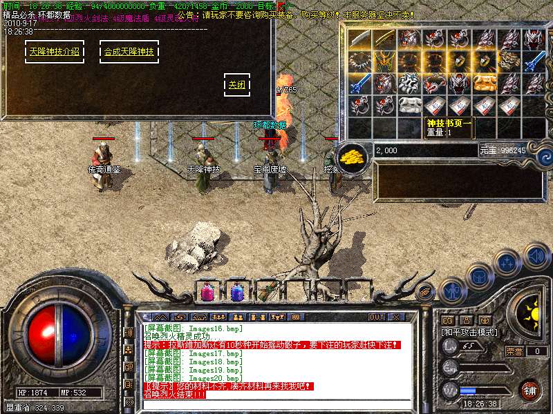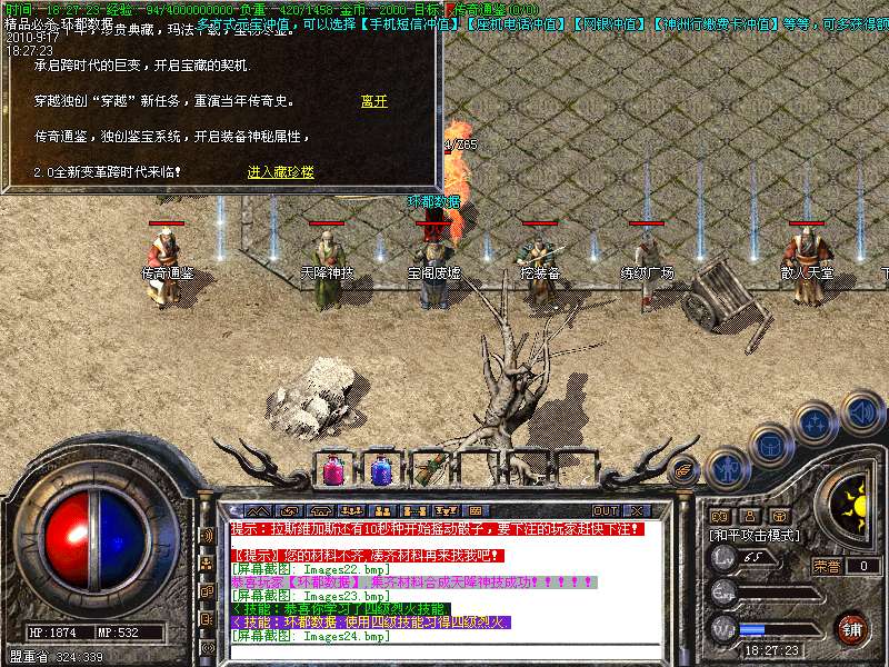 20. ①.天下第一:每职业等级第一名随时在比齐皇宫申请,可获得1.2倍攻魔道!②.行会争霸:每天下午18点,土城左上角点功城公告牌进入,