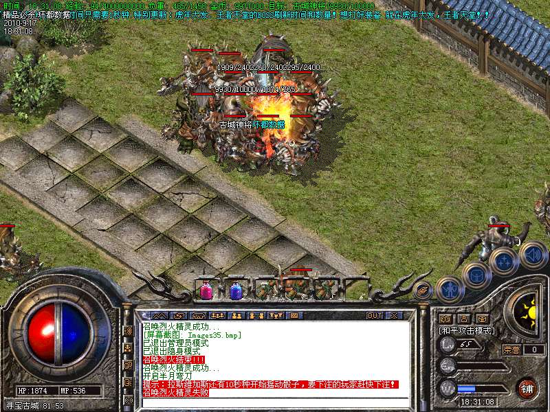 2.武器可升级7点.每次升级时间只需要1秒钟.特别更新:虎年大发、王者天堂的BOSS刷新时间和数量!想打好装备 就在虎年大发,王者天堂!