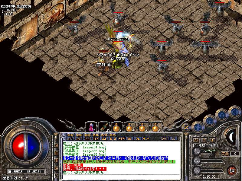 服务器在幻境7层,魔龙血域,袄玛3层,王者天堂,荣誉之城,寂静3层,地下陵墓每小时刷3到5只魔龙教主!爆战神开天装备喔!别错过!寂静1到3层是新人混装备元宝的最好地方。