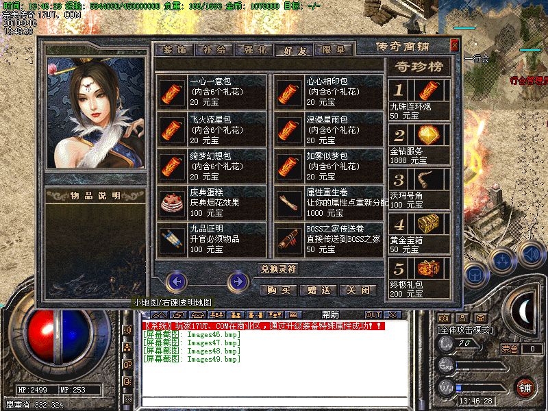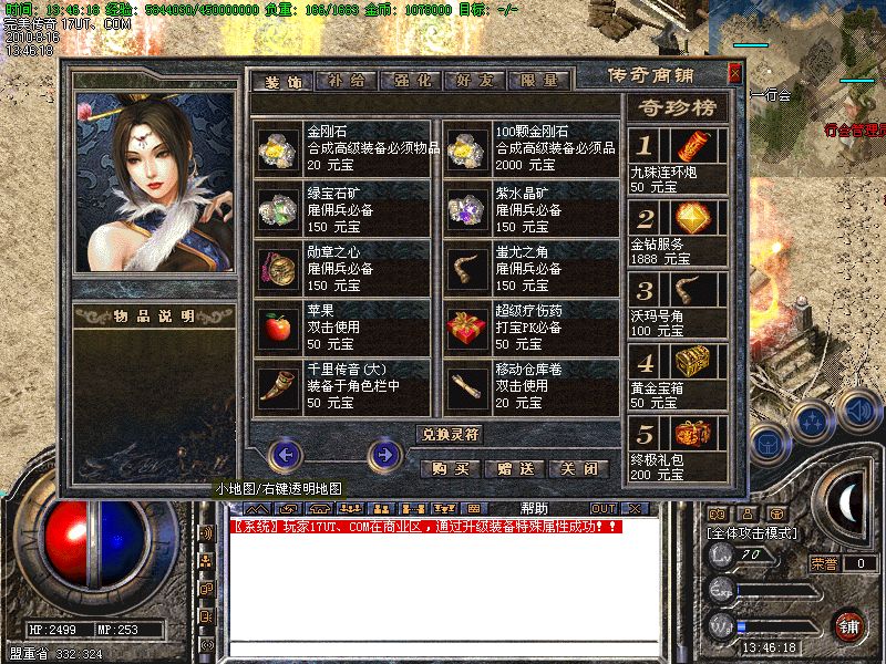 【积分兑换】 打怪获得的积分可以在NPC处兑换高等级装备.