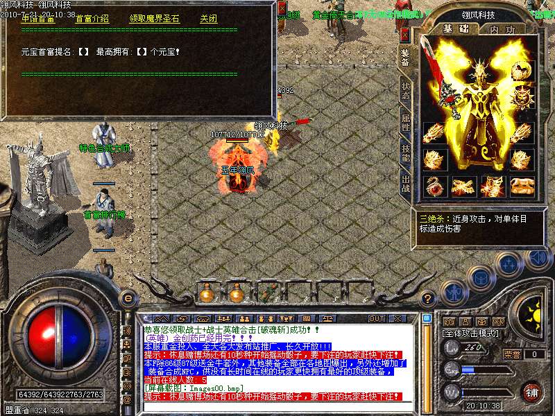 职业平衡:调整三职业的平衡性 加强道道合击 道士圣兽 加强法师火墙威力 魔法盾抵挡伤害 加强三职业内功等级属性