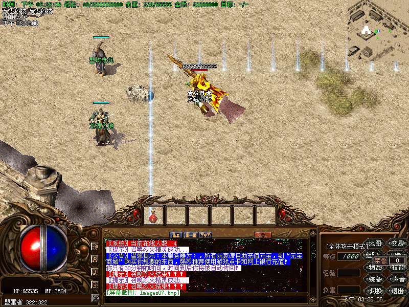 温馨提示:在土城 338 341 有个"装备回收员",在那里玩家可以把多余的高级装备兑换成元宝.
