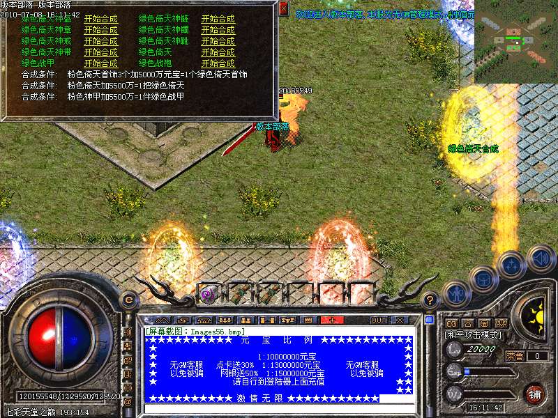 增加最新地图:七彩天堂之巅。此地图分7个地方。分别可以爆出七彩装备!