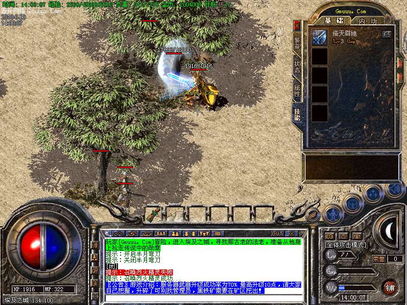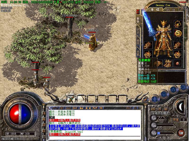 [版本特色01]服务器开放了装备合成功能,可以拿中级装备合成高级装备,详细介绍见土城左下角NPC!