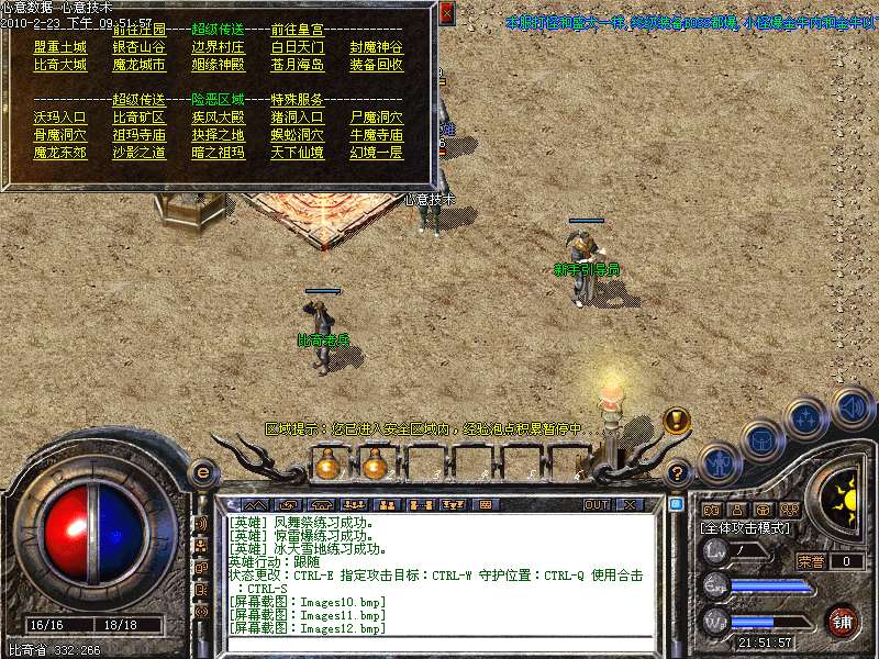 11: 新地图,灭神地图.青龙,炎龙,雷龙.金牛之地,灭神地图.命运之门(注:闯关到80可随机获得经验内功经验装备.元宝等物品)