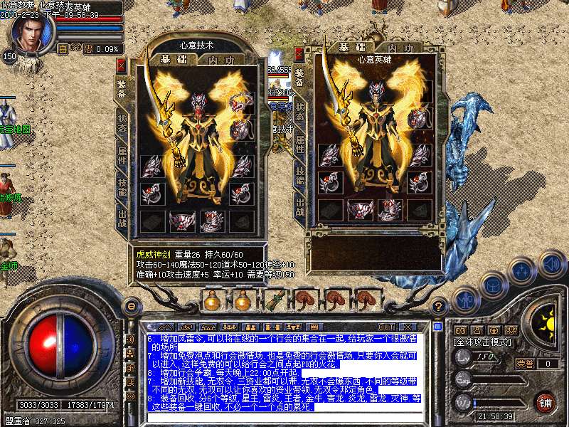 四神使者 装备商城 拍卖行 免费内功泡点 元宝泡点 等