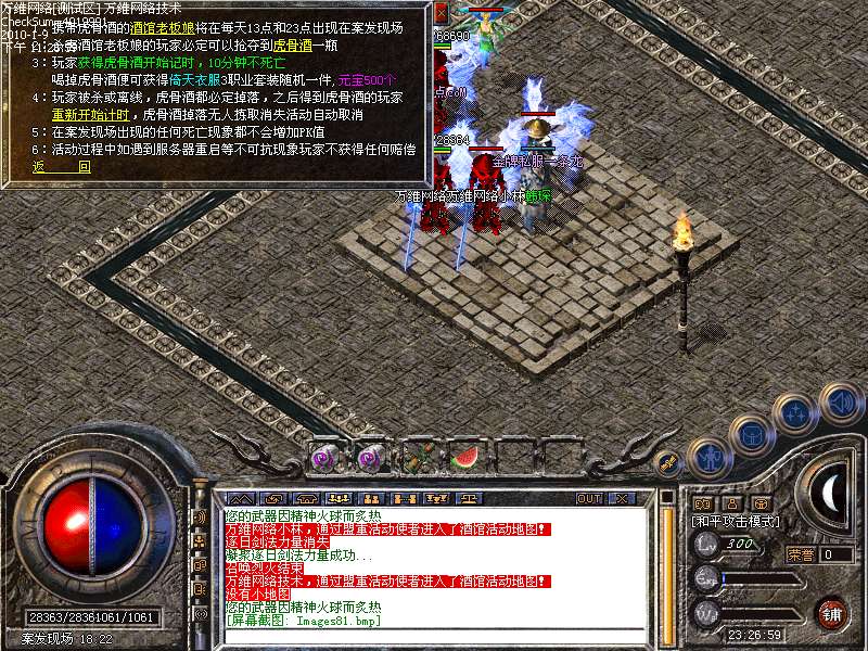 活动③: 每天13点23点开启酒馆血案活动,保护虎骨酒10分钟,随机奖励倚天战甲一件