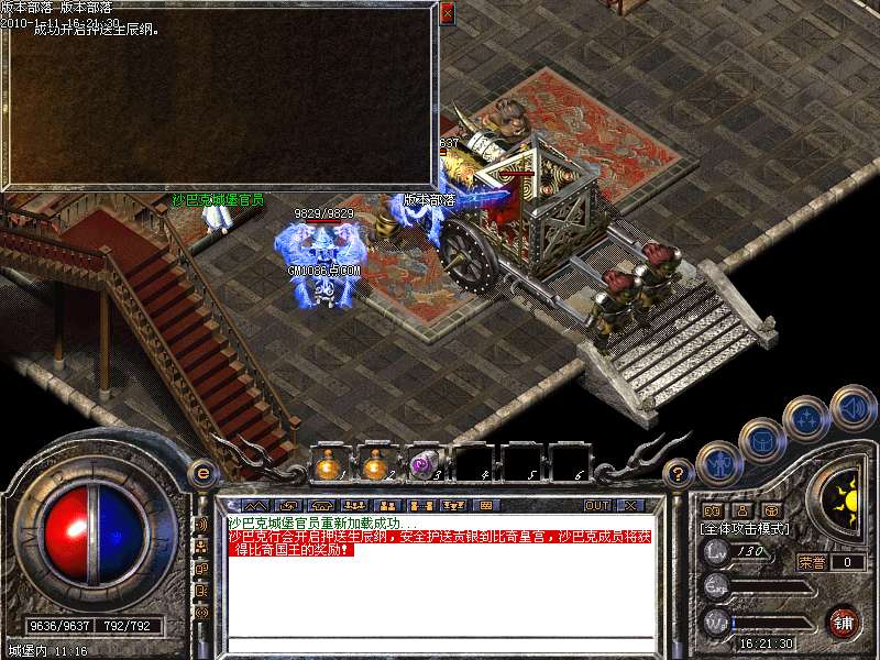 押镖系统:每天18点到22点由沙巴克老大领取押运镖车任务