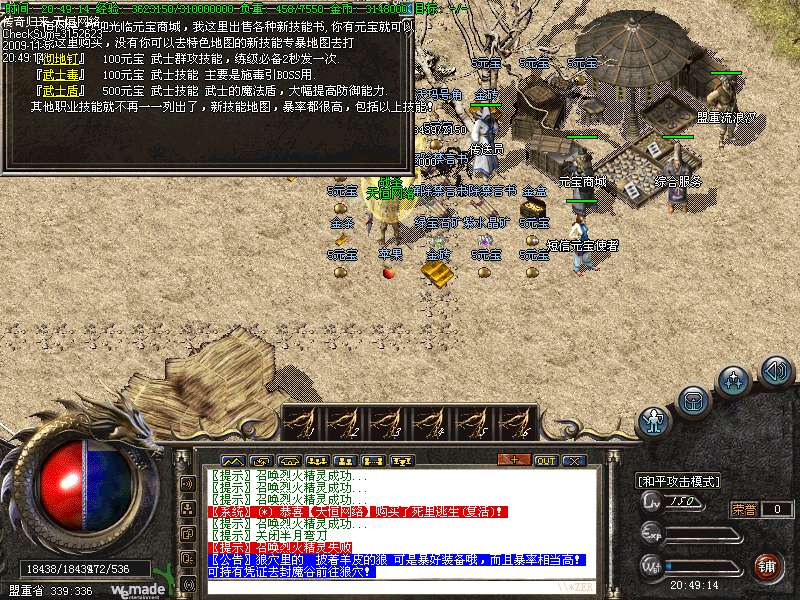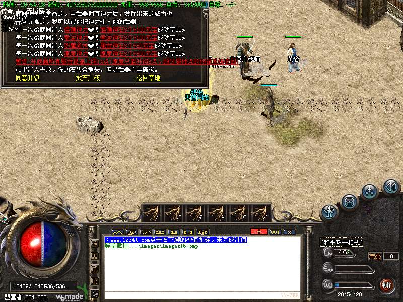 5.转生条件很简单,只需要200元宝就可以2转了,而且还赠送相应的属性点,没条件的可以打几件辉煌然后去盟重省NPC管家320 342那里回收换成元宝即可
