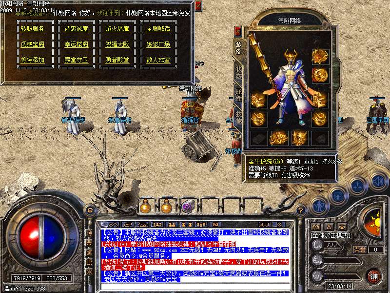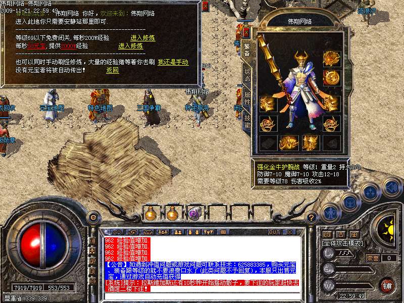 8.终极装备为炎龙三套装,必须靠打,决不出售终极装备跟等级,祝大家游戏愉快