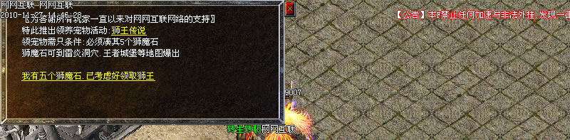 《招财进宝》 土城杂货店下招财进宝NPC传送进入 怪物:招财魔王、黄金卫士、招财将军、招财刀客、招财小白、招财宝箱。可以掉落狂雷、王者、青龙、炎龙、雷龙,