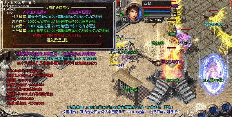 游戏活动⑧:如果您的等级到110级就可以每天在镇远镖局那里做押镖任务,可获得海量经验、元宝、灵符、金刚石
