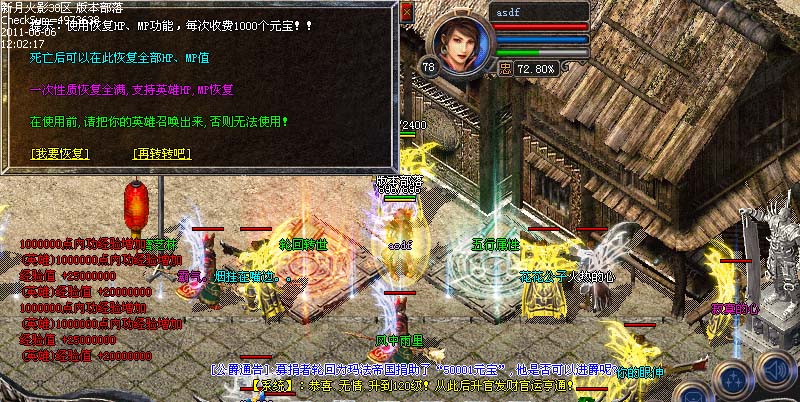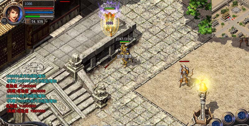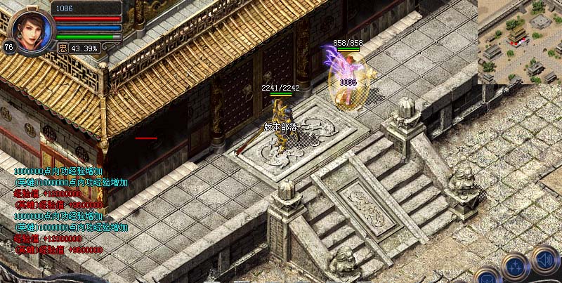 免费闭关修炼区内有一牌坊,站在上面每秒获得5000W经验,玩家必争