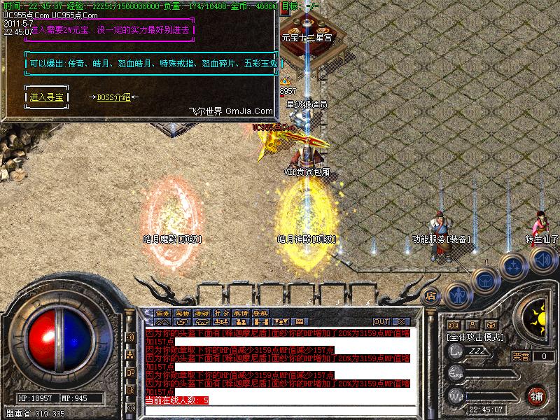 【更新】财富劫阵,BOSS爆出财富神石可以启动财富阵,启动的同时可以随机获得元宝!!满188层土药将会出现大量的元宝!!具体请查看土城财富劫阵NPC!!