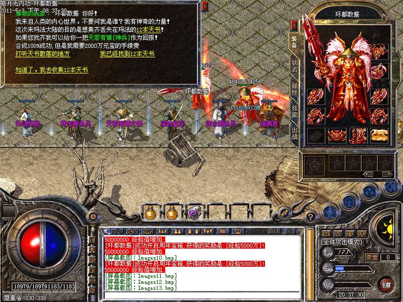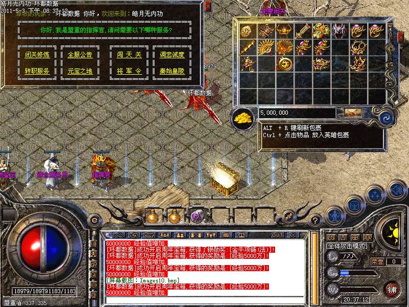 [255,249]攻城奖励:晚上22:01-22.30可以自行在沙皇宫领取奖励.攻城奖励为128W元宝!