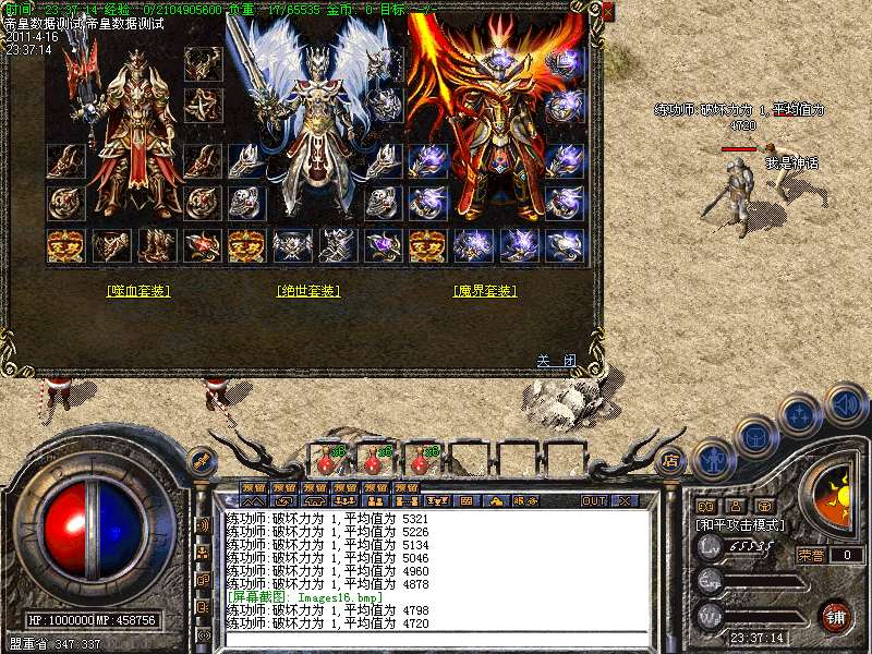 ④.终极装备分为 绝世套 魔界套 妖界备,穿齐10件触发超级属性!