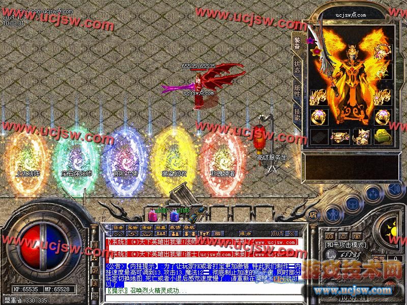 [宠物系统]:玩家可用灵宠神石进行喂养麒麟圣兽.此宠物带群攻.绝对是练级打BOSS的好帮手!!!