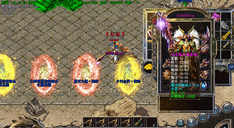 【转生系统】人物转生需要到盟重土城左边的转生雕像那里完成转生.转生后可获得属性奖励.还有酷炫的转生封号.
